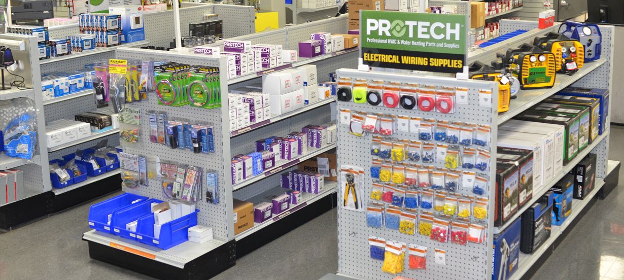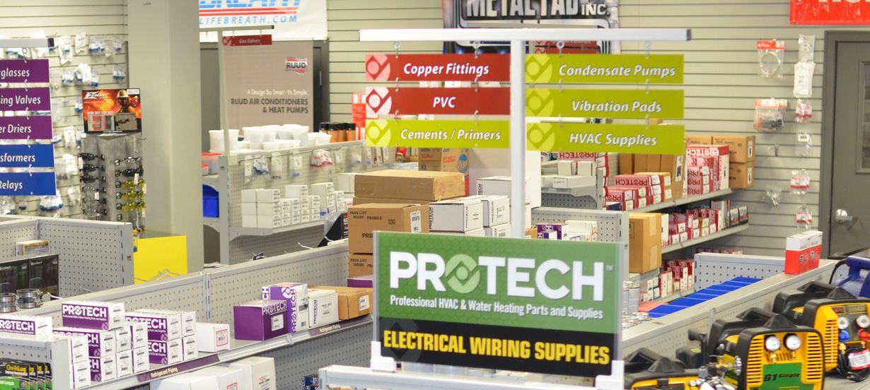 Prostock stores, the retail purchasing environment for heating & air conditioning contractors, is well organized with most products on display for easy access. The retail-like feel gives you a convenient way to shop locally and plan for HVAC parts, products and supplies.