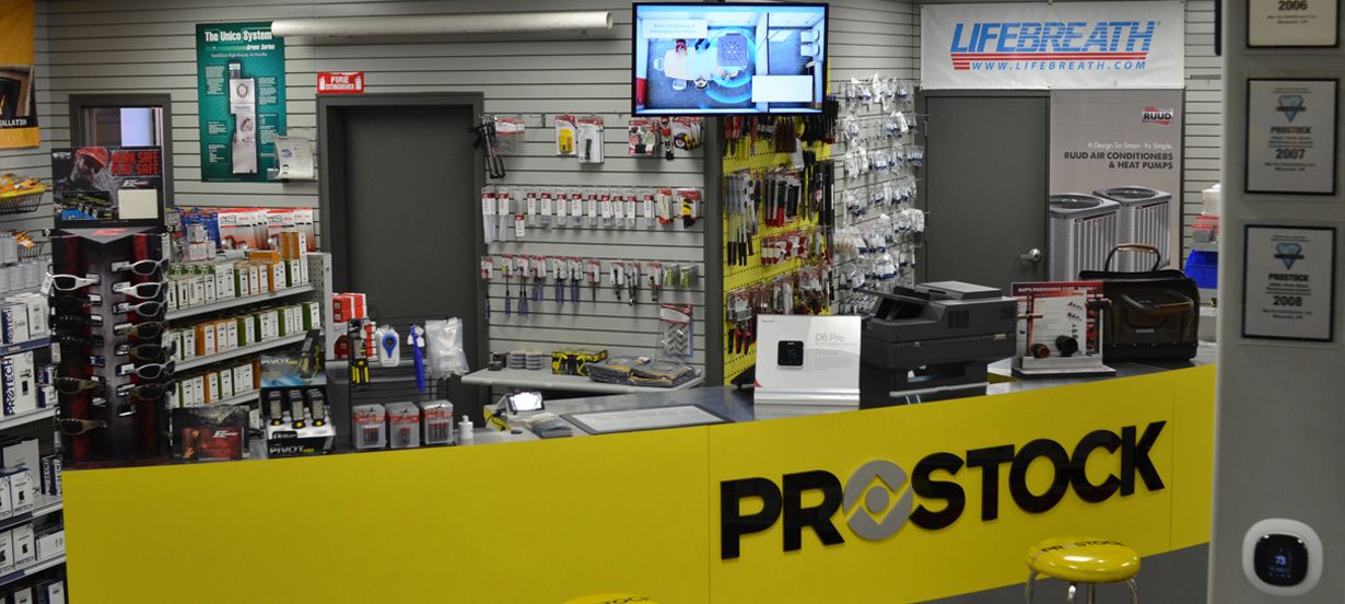 Prostock stores, the retail purchasing environment for heating & air conditioning contractors, is well organized with most products on display for easy access. The retail-like feel gives you a convenient way to shop locally and plan for HVAC parts, products and supplies.